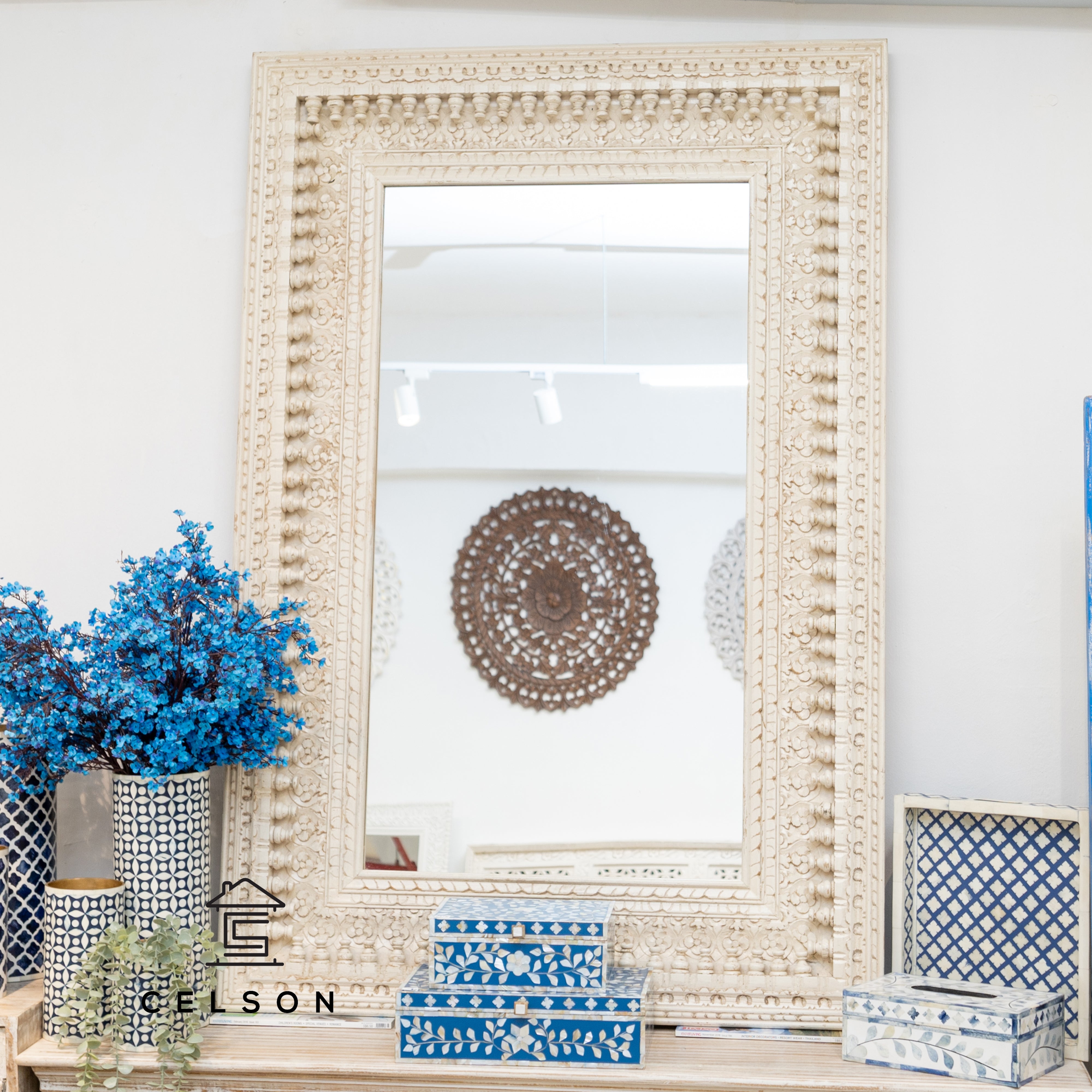 Tanya Hand Carved Wooden Mirror