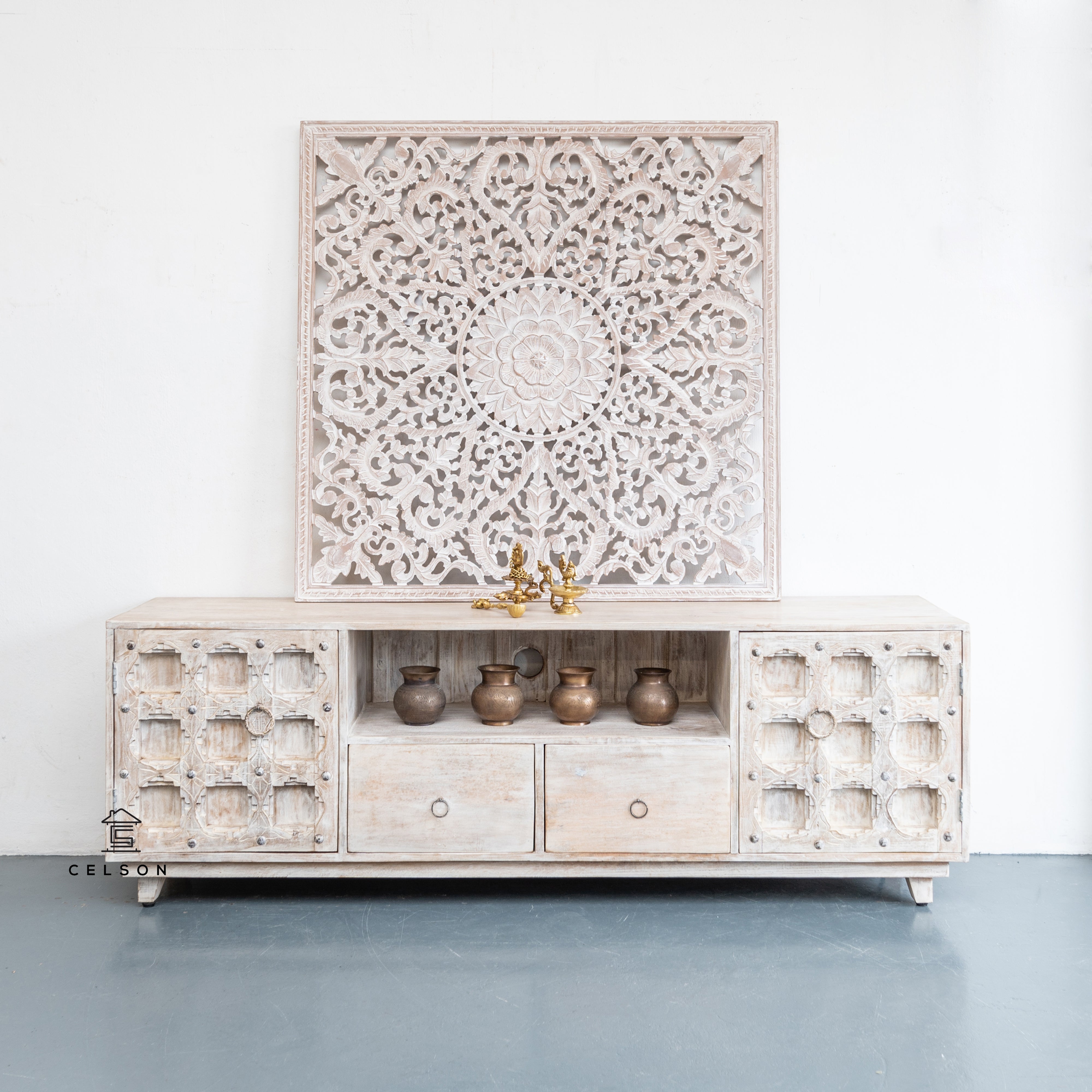 Adam Hand Carved Wooden TV Console