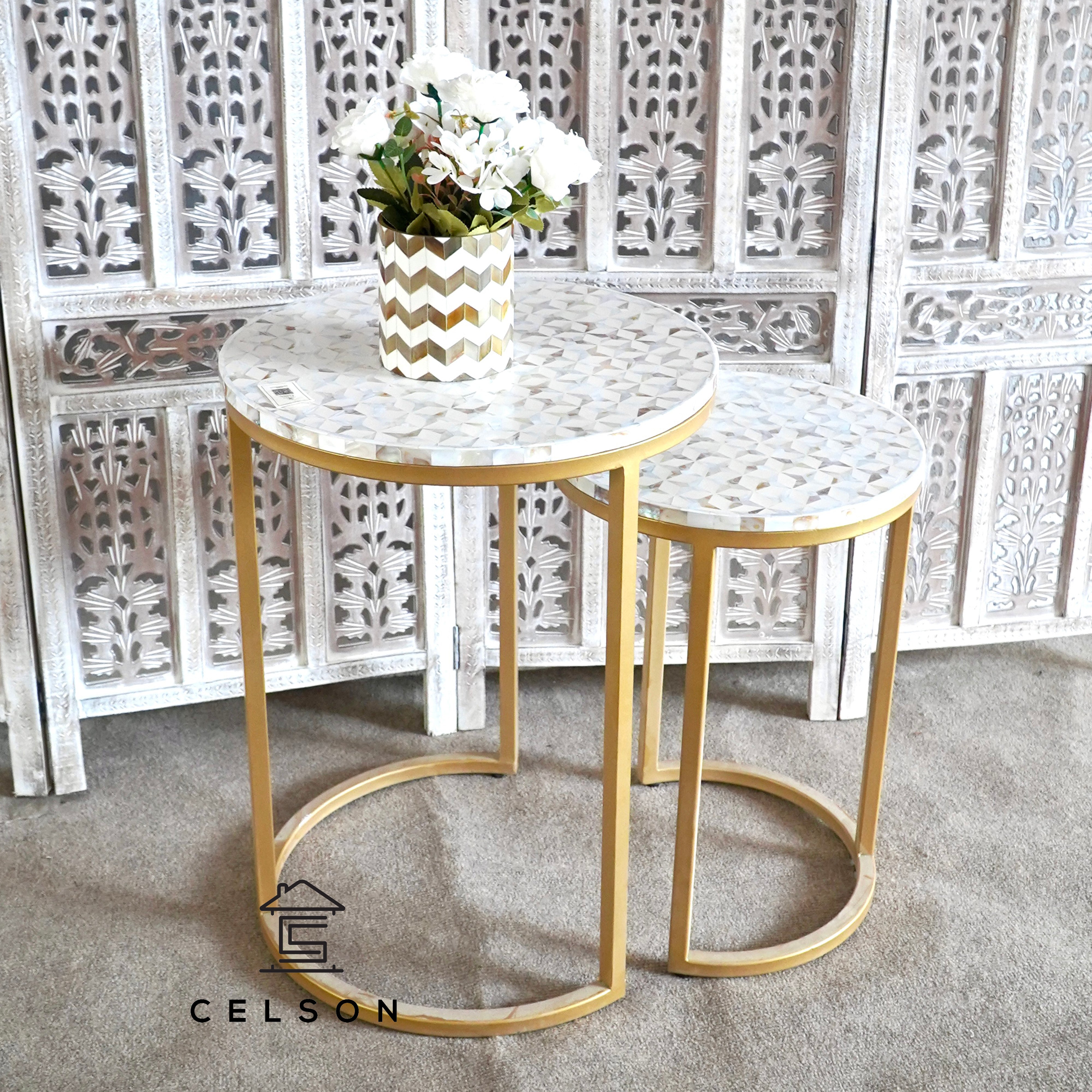 Farah Mother of Pearl Inlay Nesting Table Set