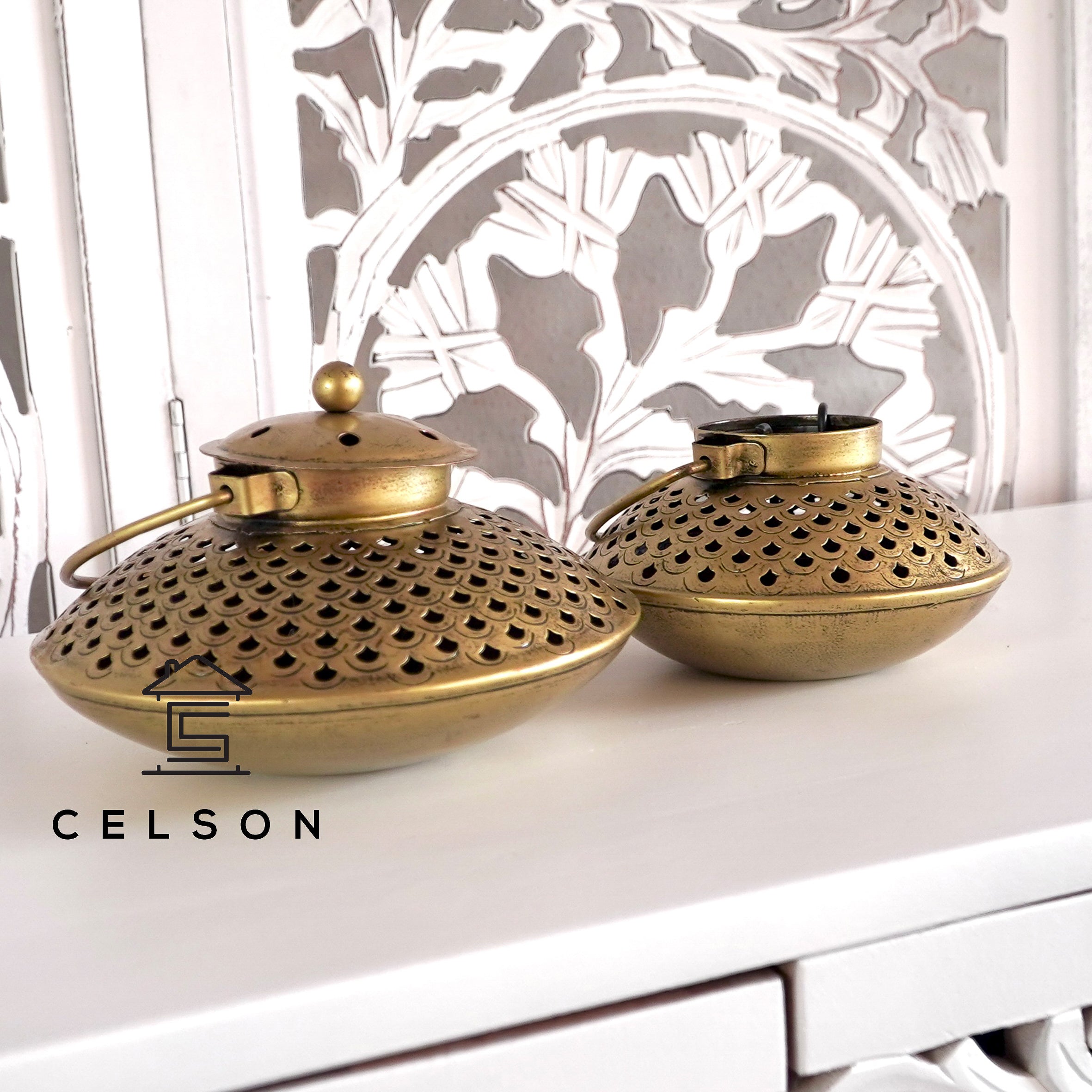 Give your living room or outdoor a vintage rustic look with our lantern. This comes in round shape with antique brass finish.