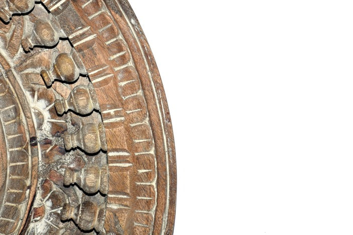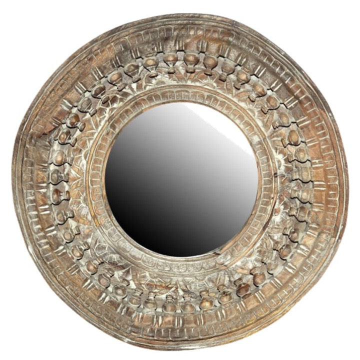 This gorgeous piece has a frame made with traditional Indian spindle design & has been finished in a distressed style to create a masterpiece!