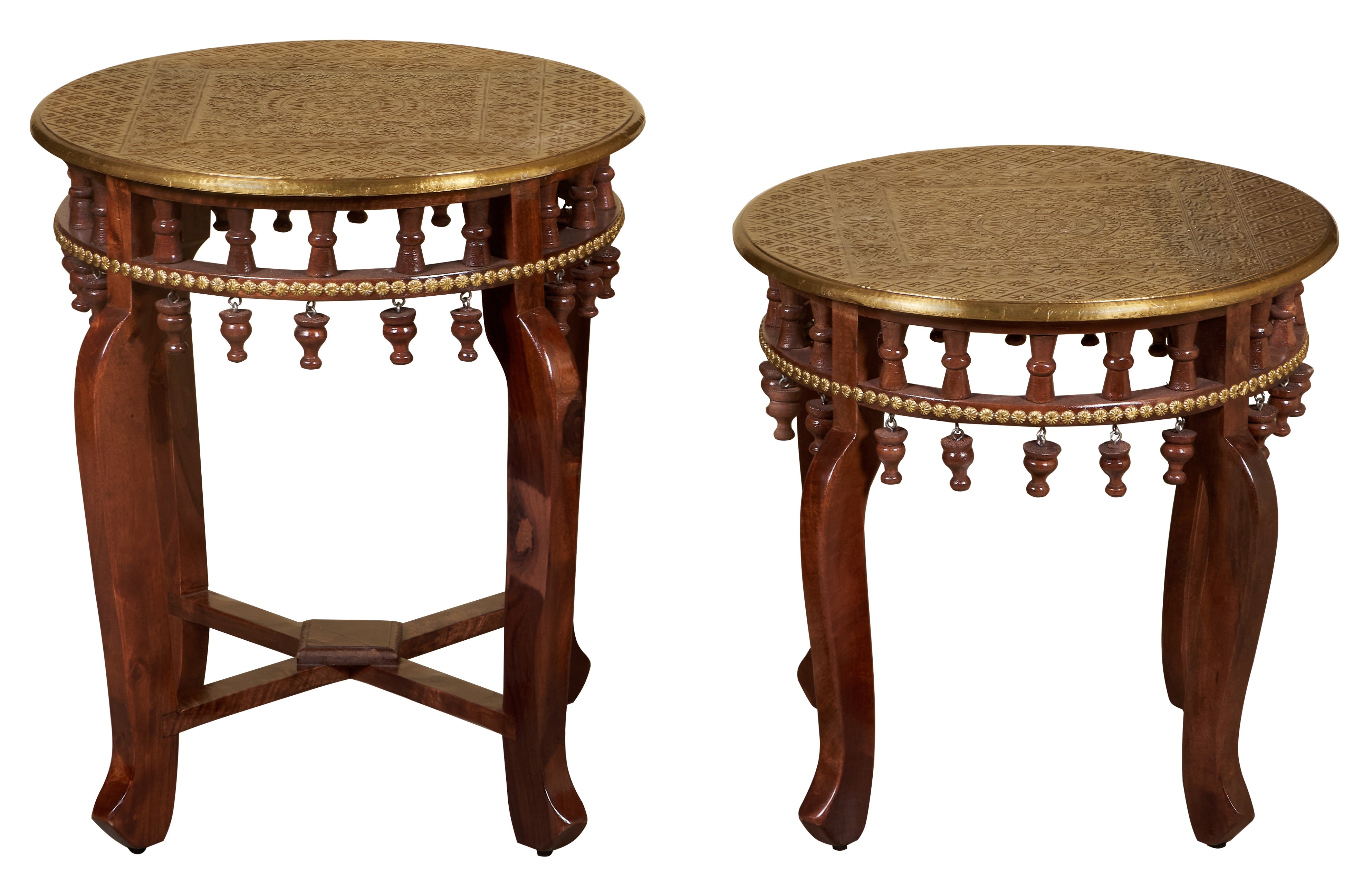 Curved, refined, and beautifully detailed- wood bodies with brass touches make these side tables irresistible.