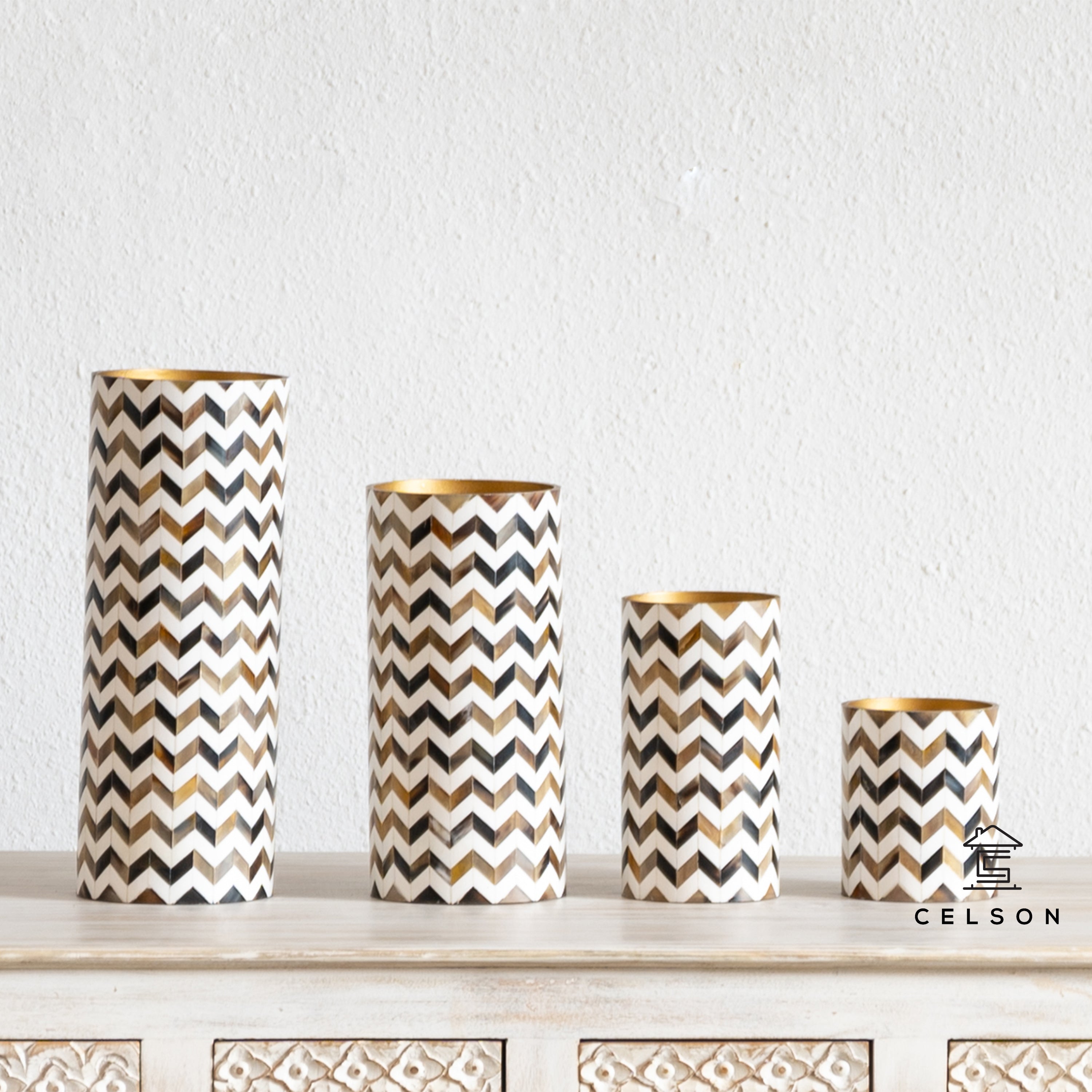 Whether you like to decorate your home with fresh showers or artificial ones, these horn inlay vases would be perfect to hold them!