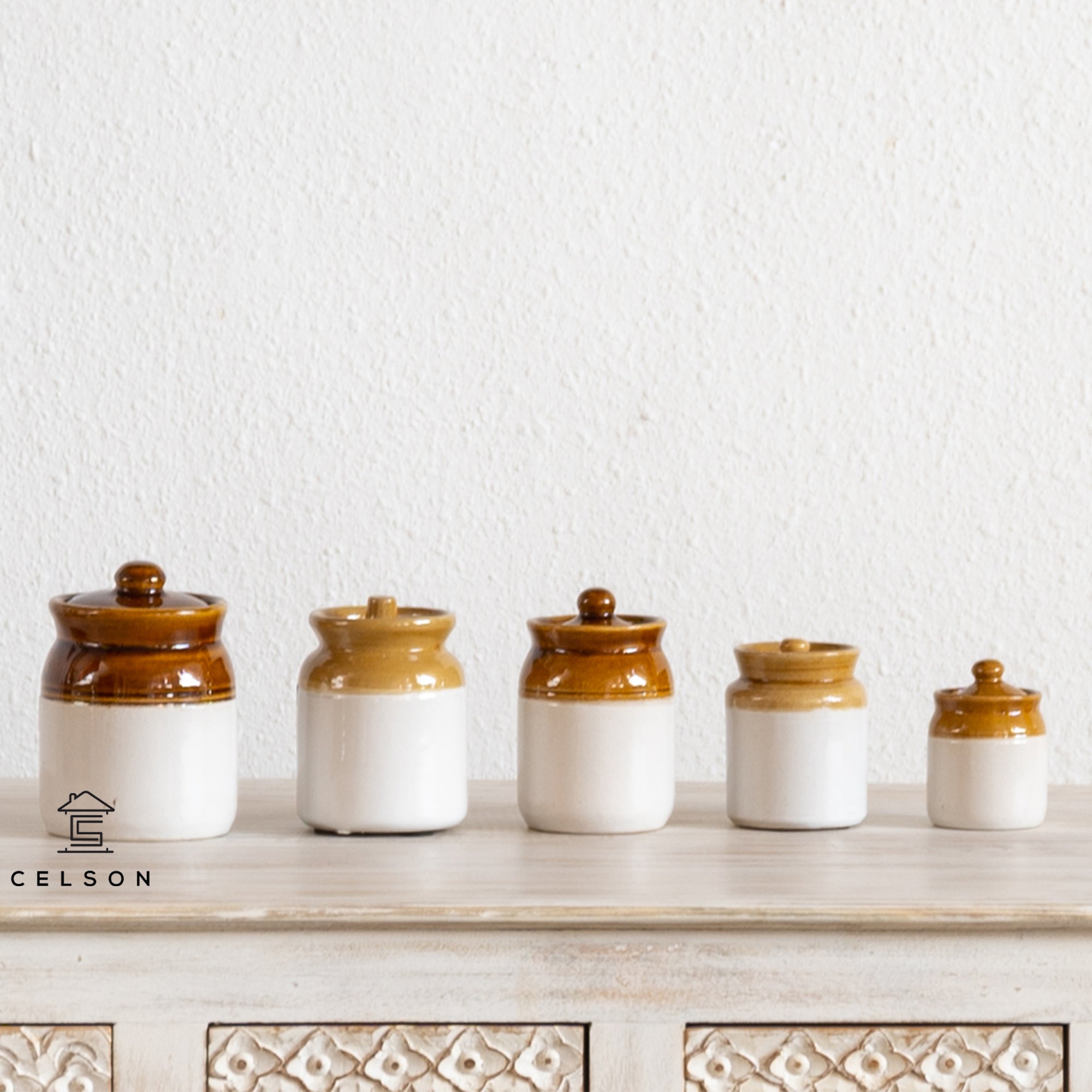 This is a traditional Indian Ceramic Jar which has been a staple in Indian kitchens since decades. Traditionally used to store pickles & chutneys, it's contemporary uses also include being used to store salt, pepper, spices and other condiments.