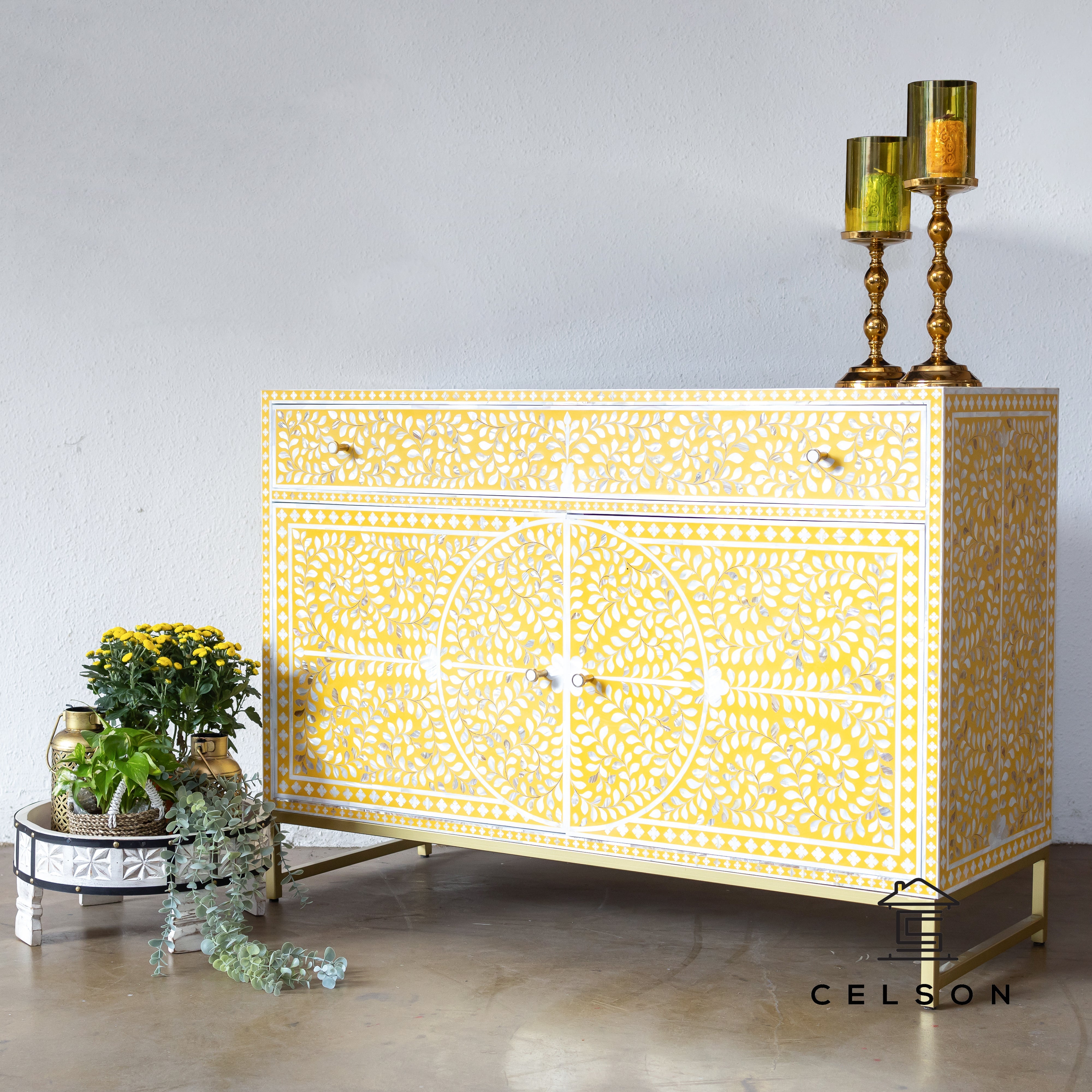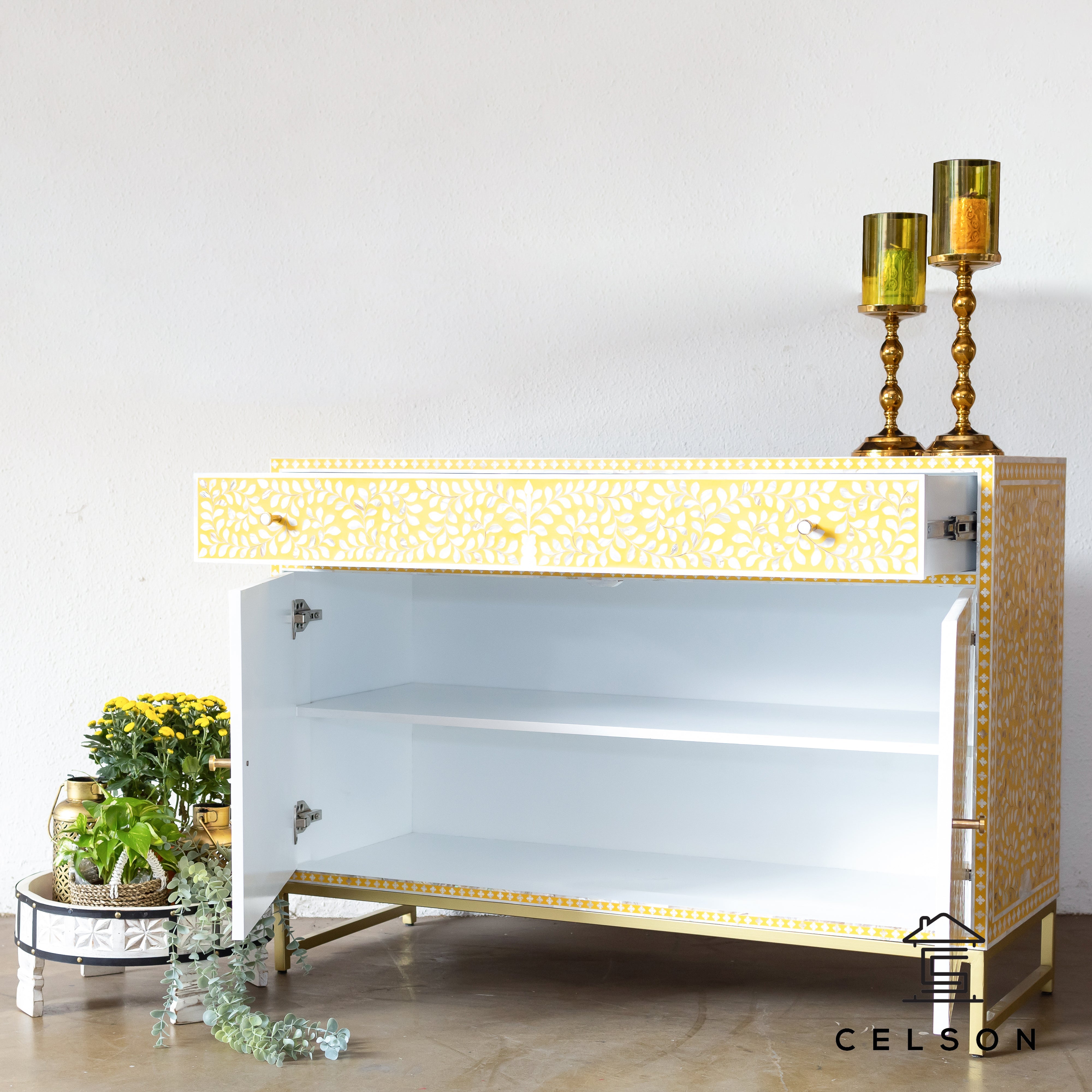 Set in a floral pattern & a lovely lemon colour, this cabinet is a must have piece!