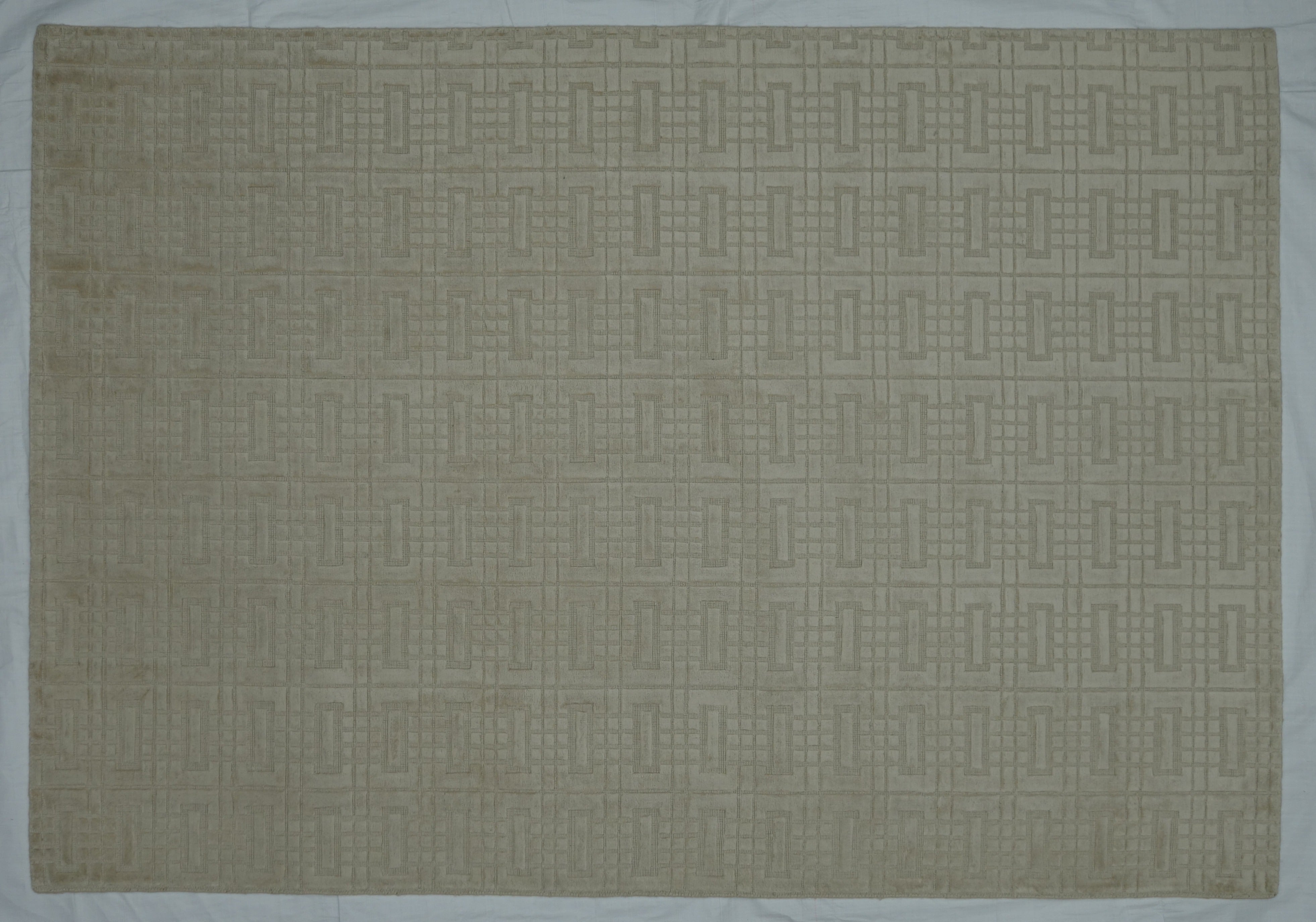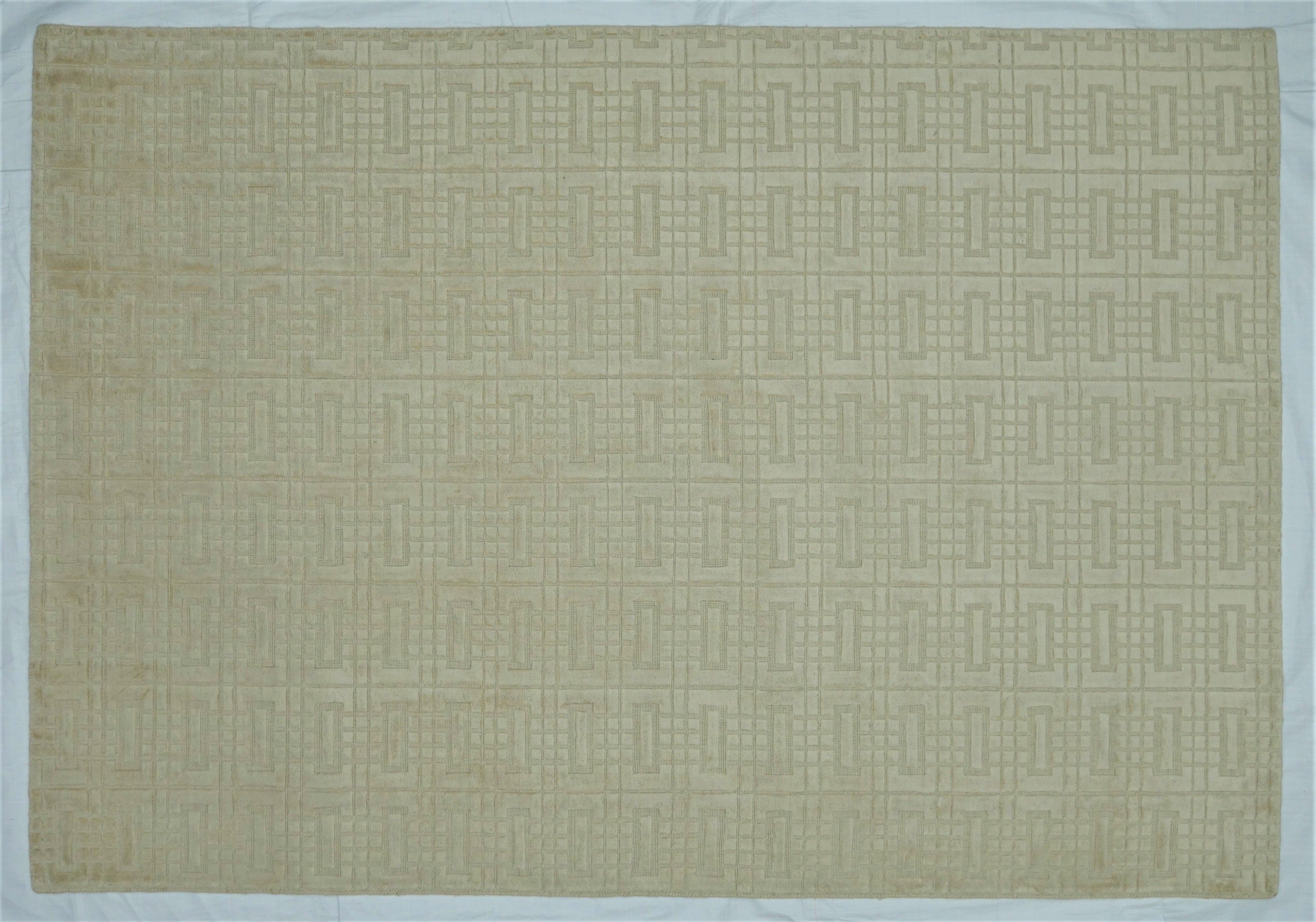 This unique piece features an all-over pattern with a geometric design and this modern rug is hand made from silk and wool fibers. High quality wool creates a unique and lush texture and feel.