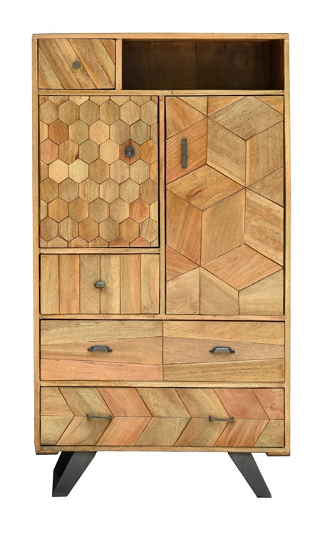 Made from solid mango wood, this tall almirah offers a modern appearance to any space.