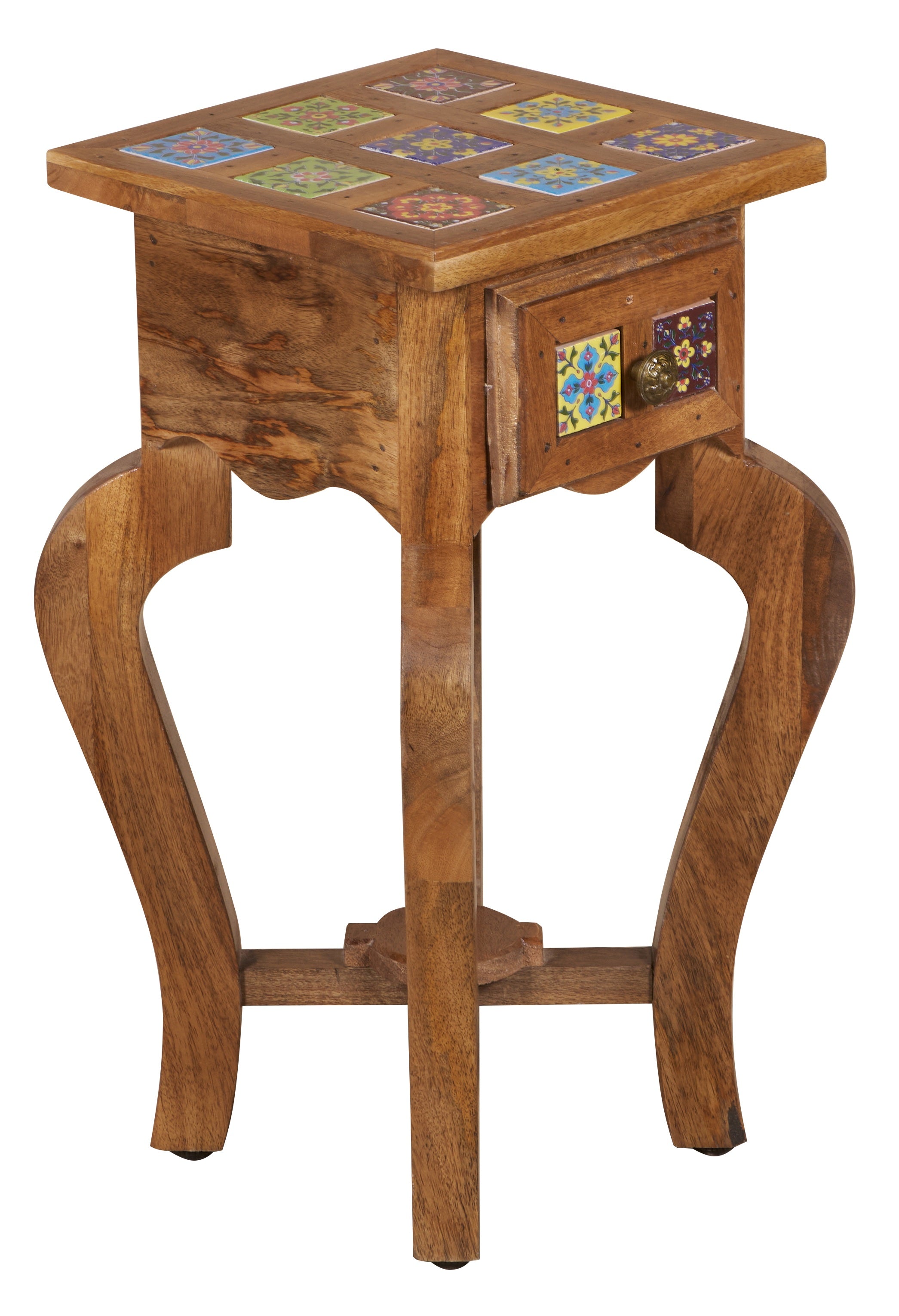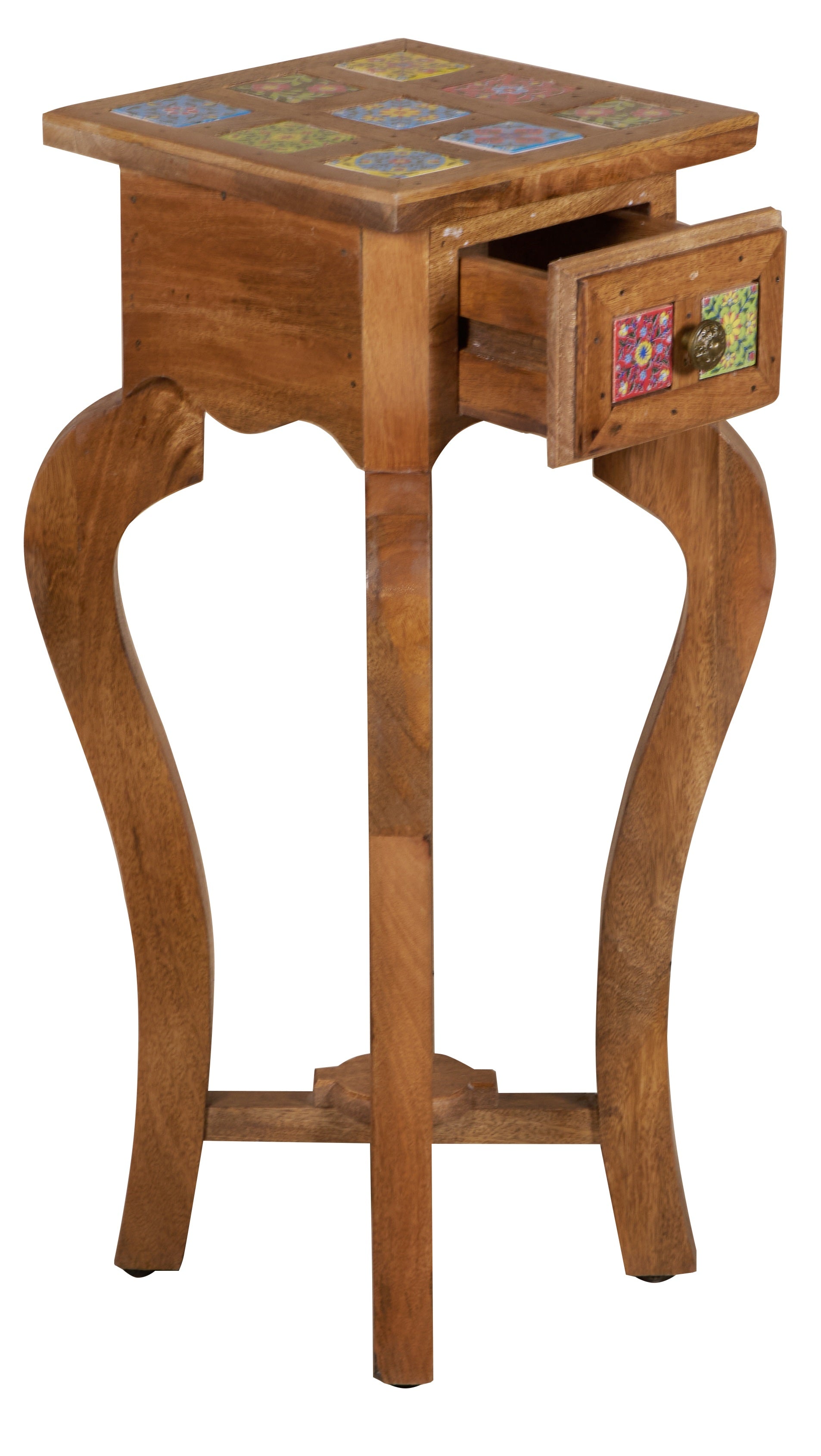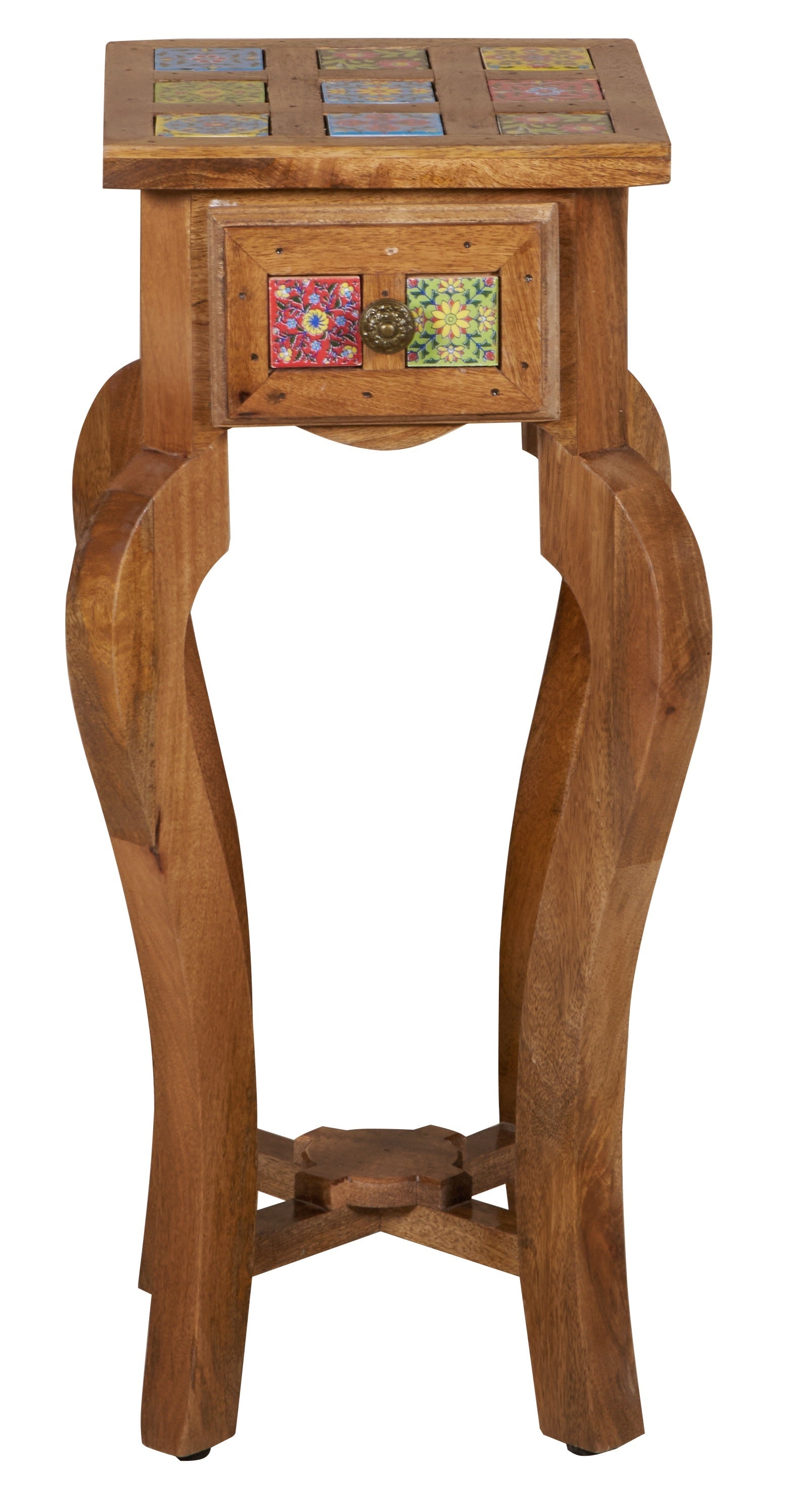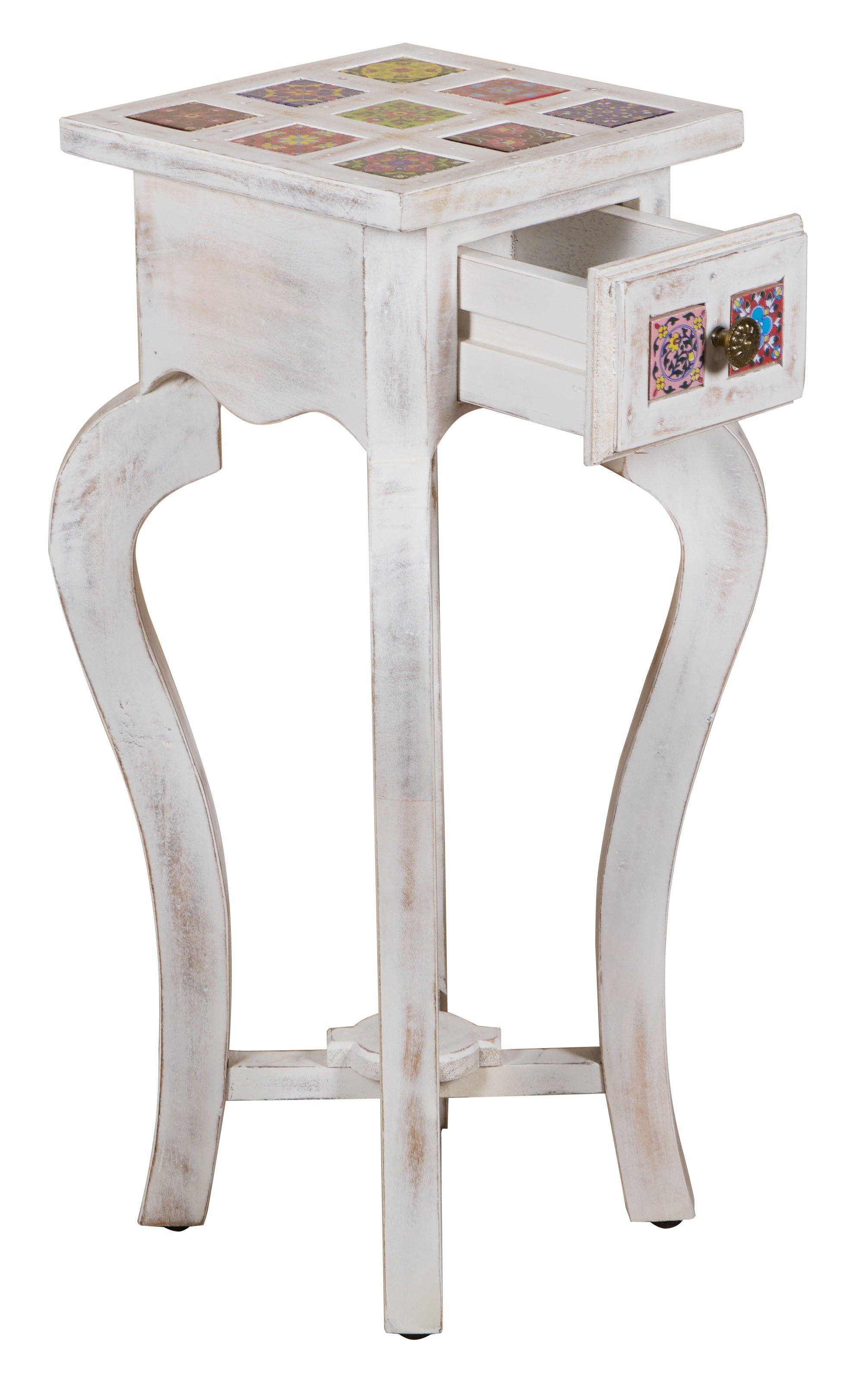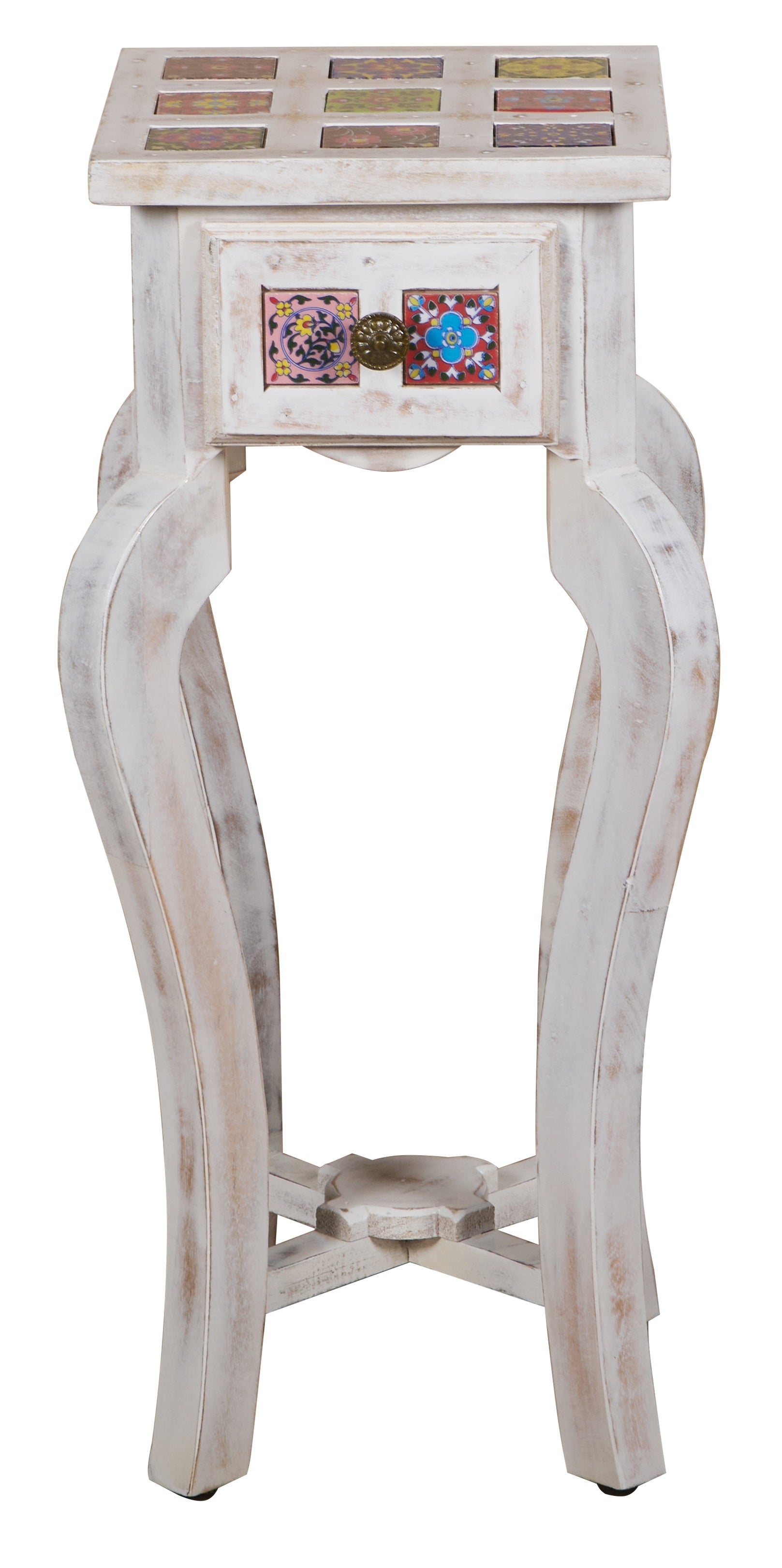 The combination of solid wooden body with multi color ceramic tiles top, these gorgeous curvy legs side tables are perfect for any home/decor.