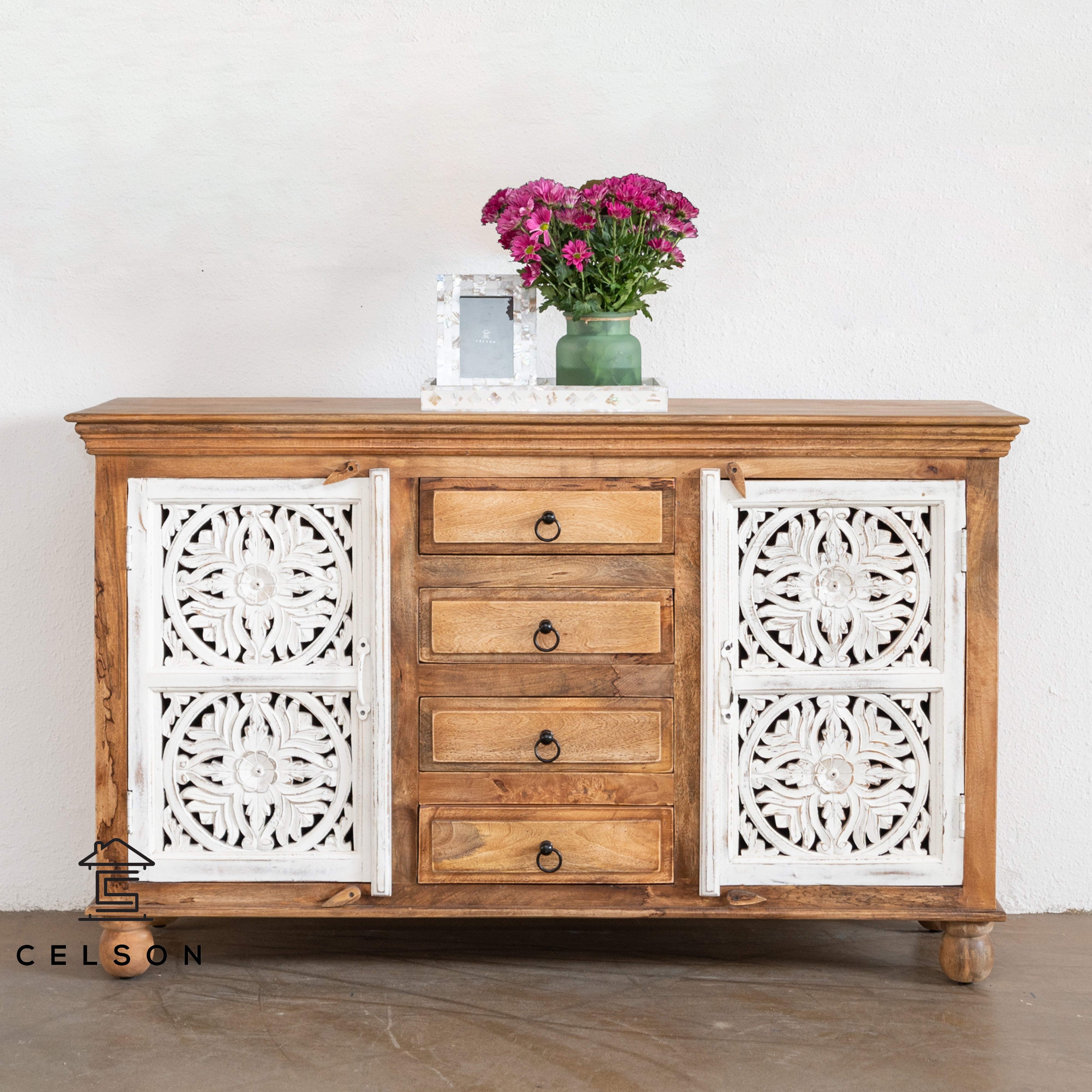 You can store all that you want in here with its 2 doors & 3 drawers, which provide a ton of storage.