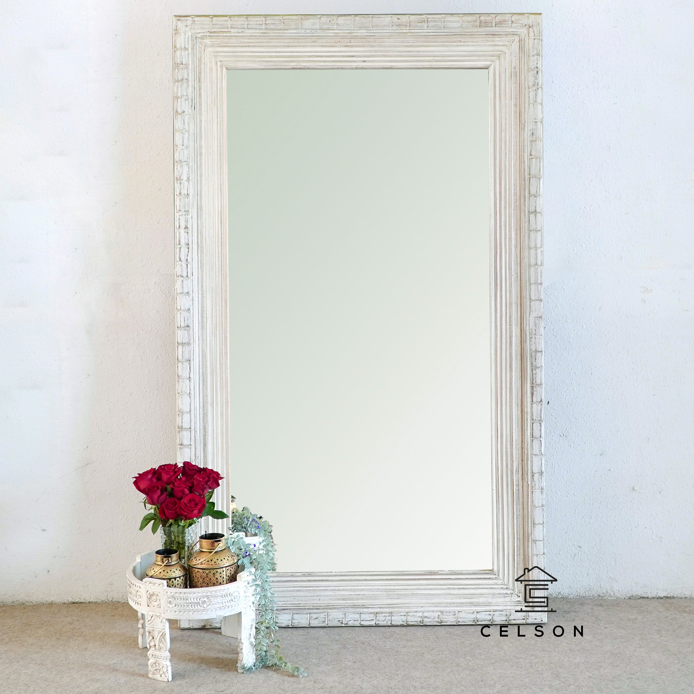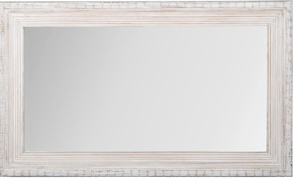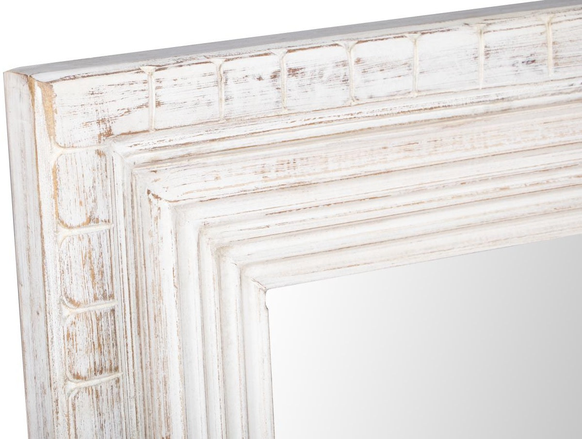 This mirror works wonders, whether placed as a striking centerpiece or as a delicate finishing touch. Its hand-carved border and soft whitewashed finish create a sophisticated, evergreen look for any room.