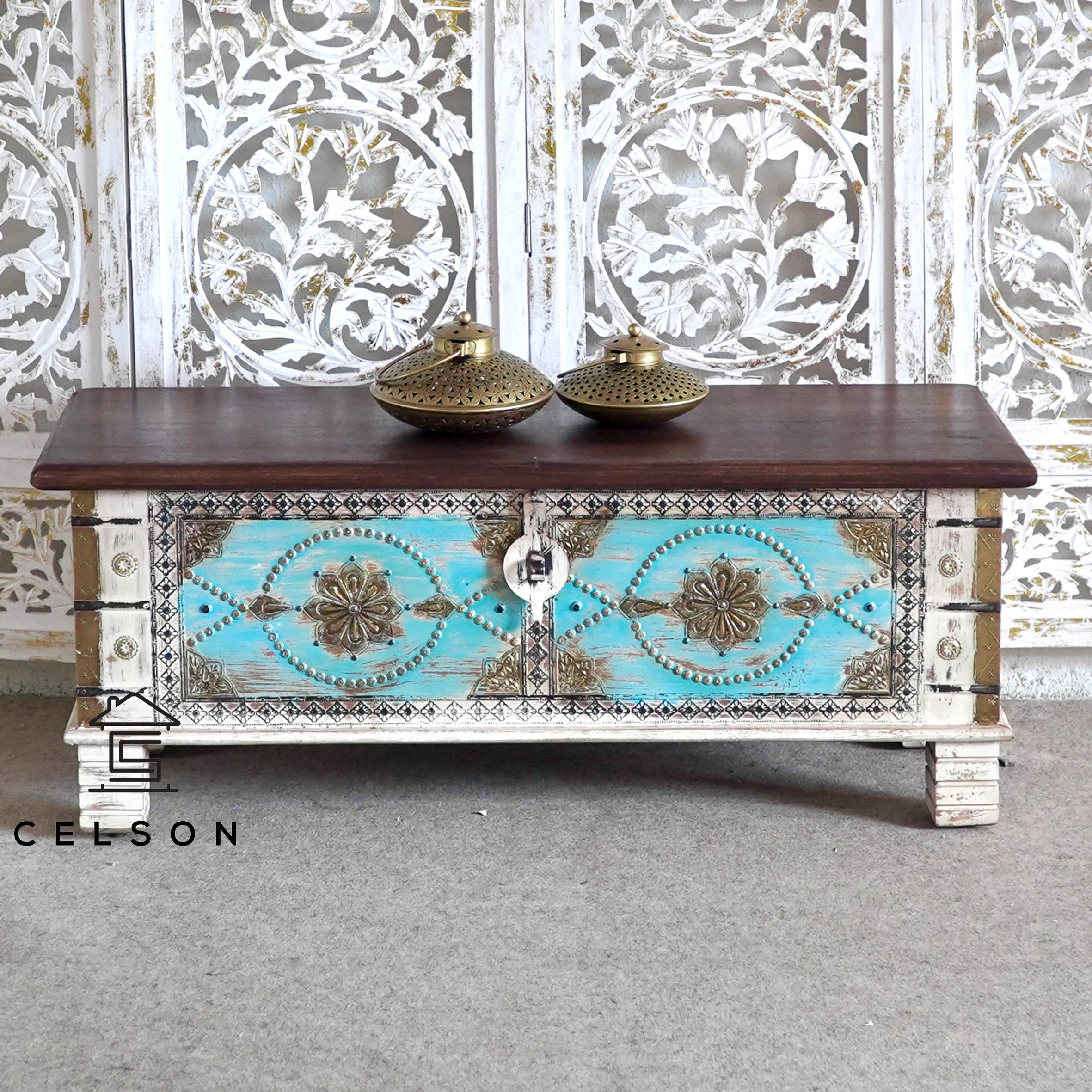 Samma Vintage Style Brass Fitted Wooden Trunk