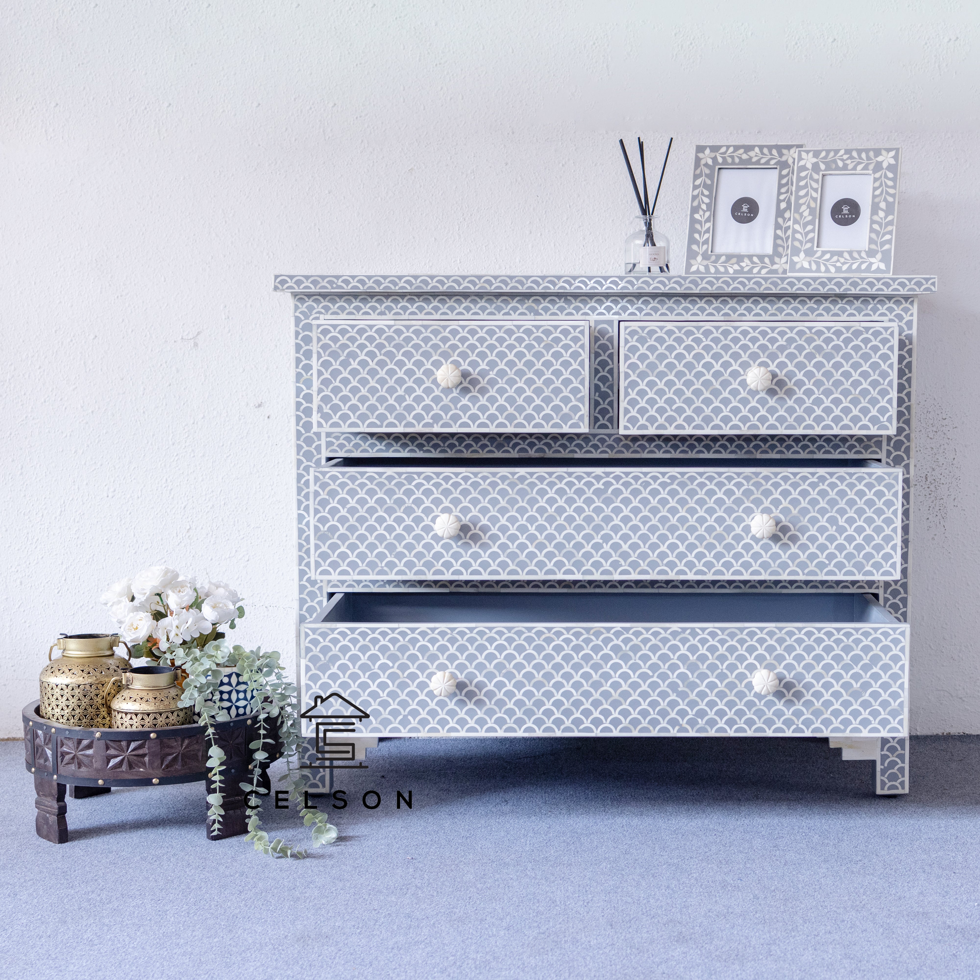 This bone inlay fish scale chest is the perfect way to add character and a fresh vibe to your home.