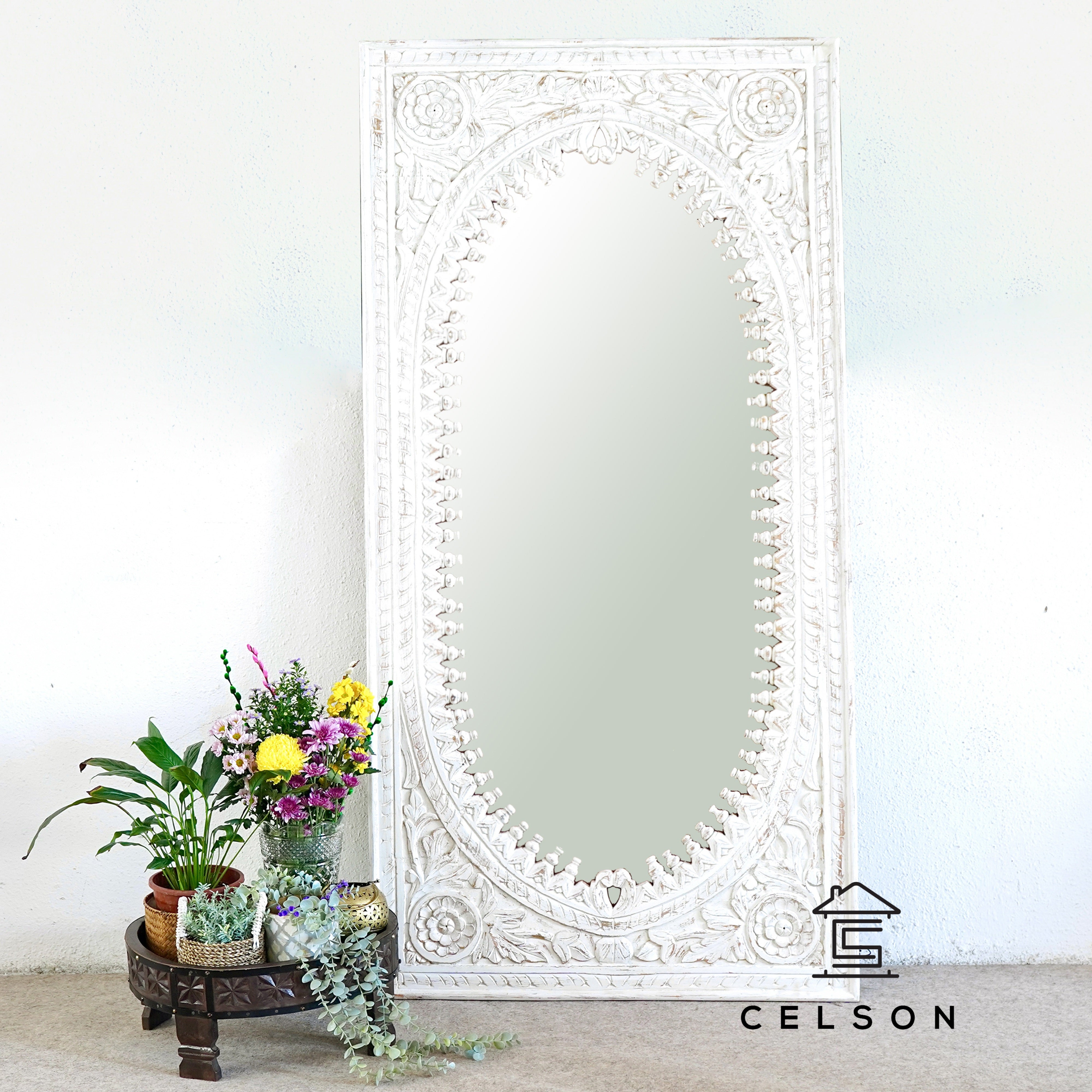 Utkarsh Spindle Carved Wooden Mirror