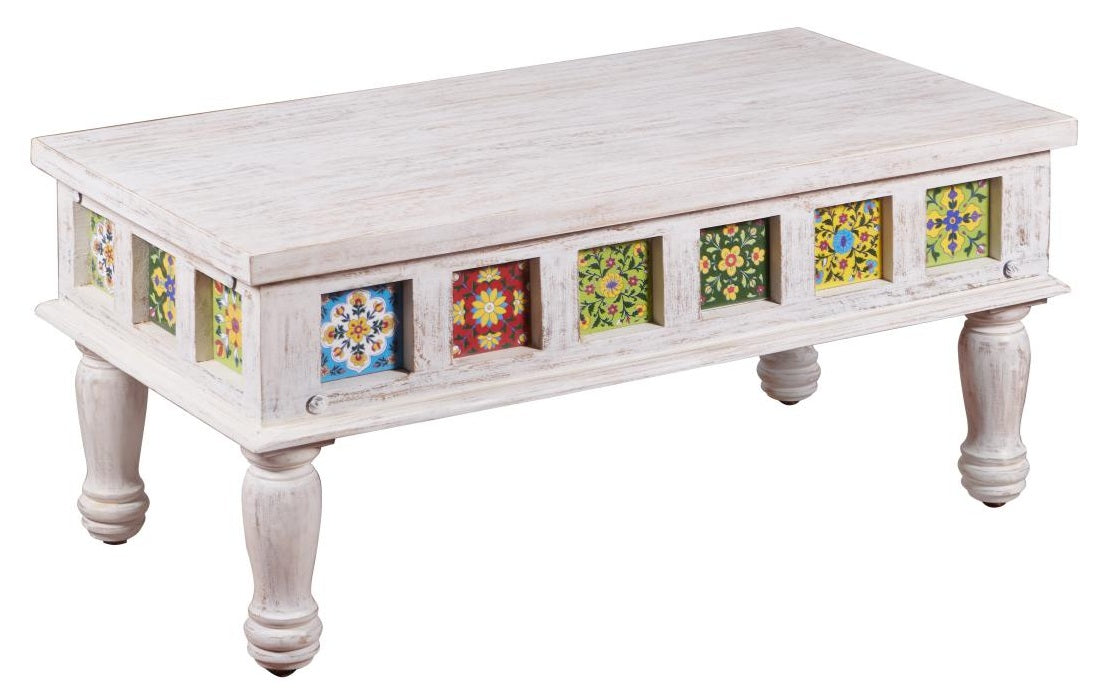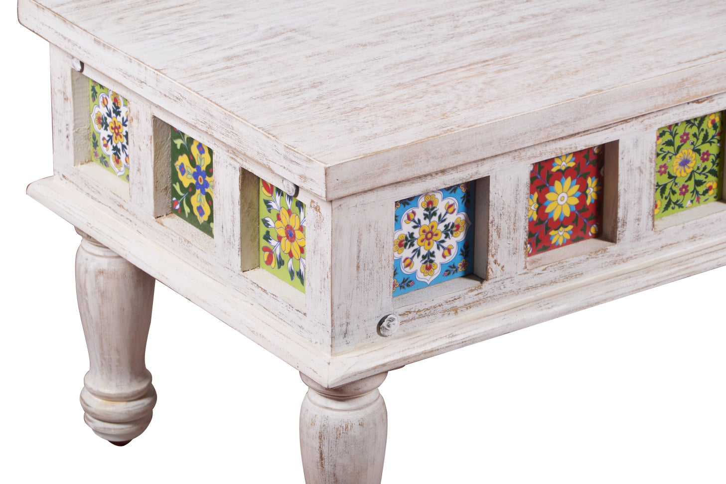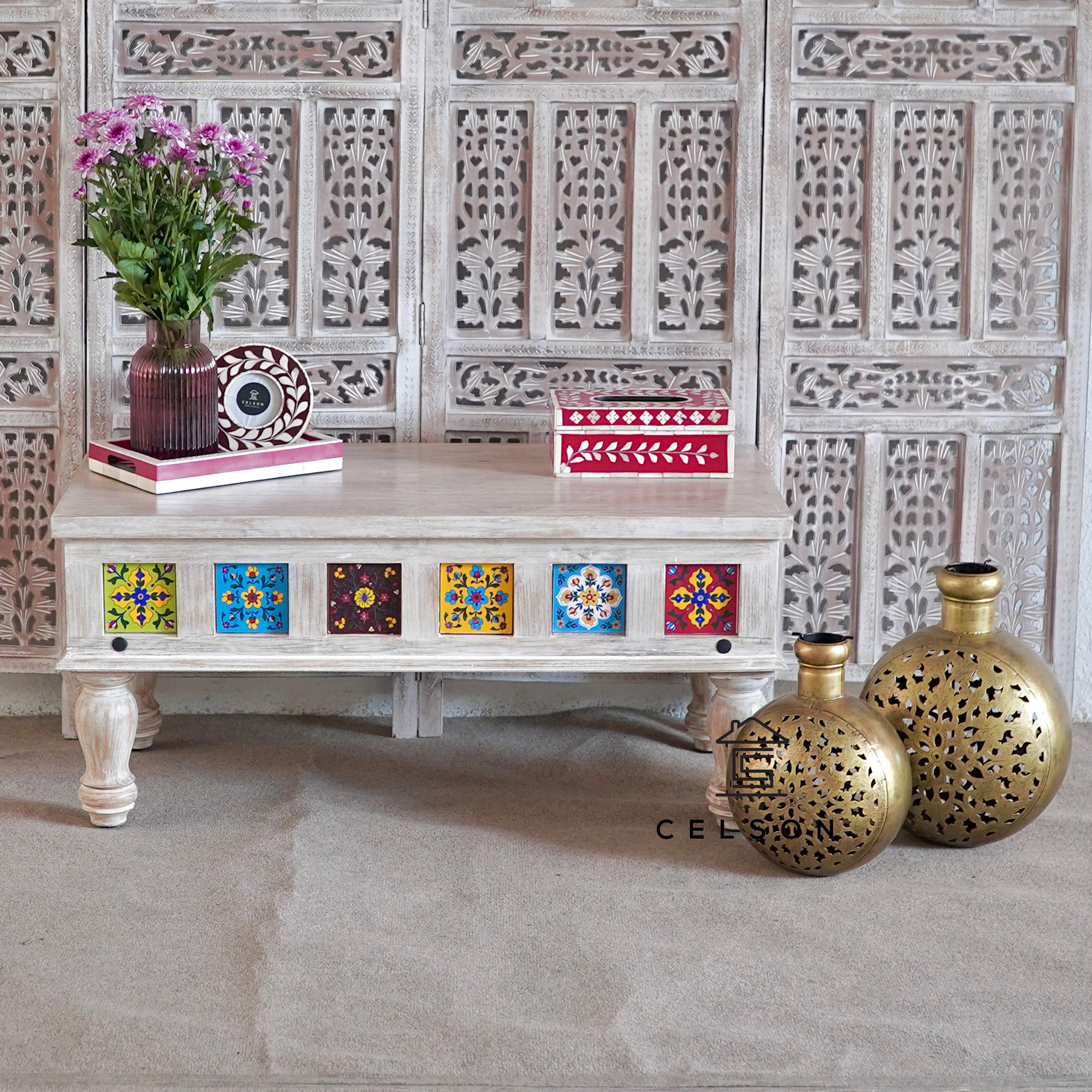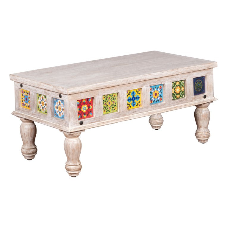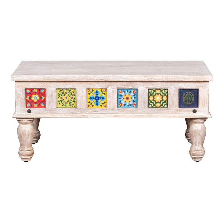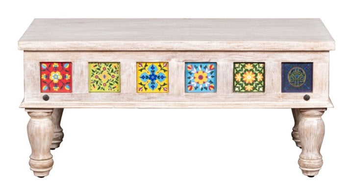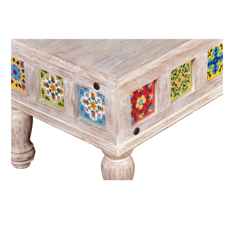 A cute but gorgeous wooden multi color tile coffee table for a family room or living room!