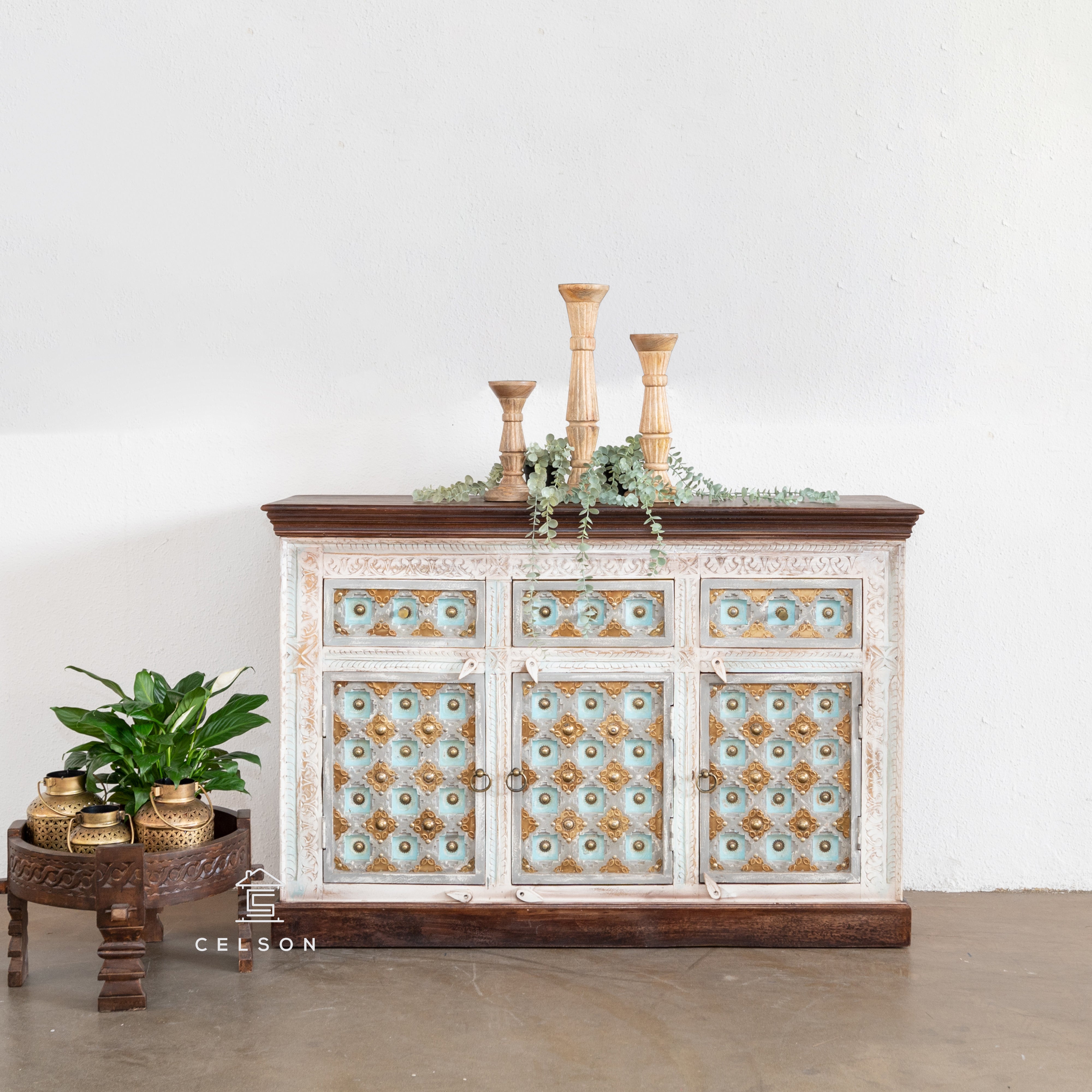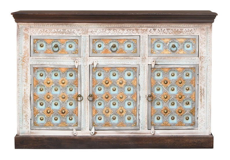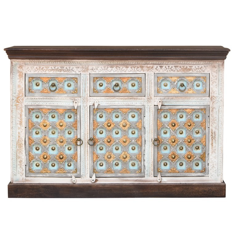 Carved and painted completely by hand, this gorgeous piece is profoundly versatile: It not only makes an ideal cabinet, but also provides statement-making storage in any room of your home.