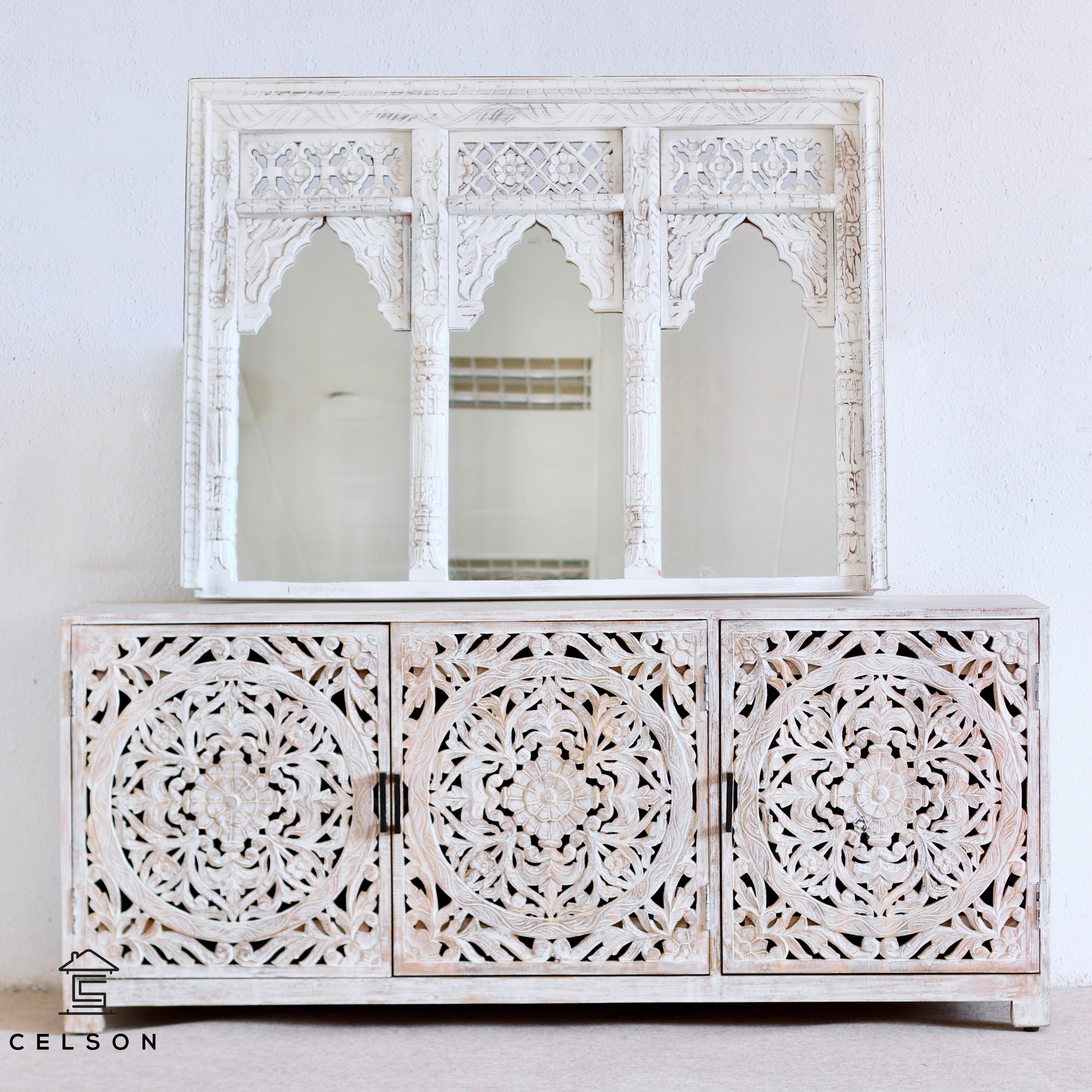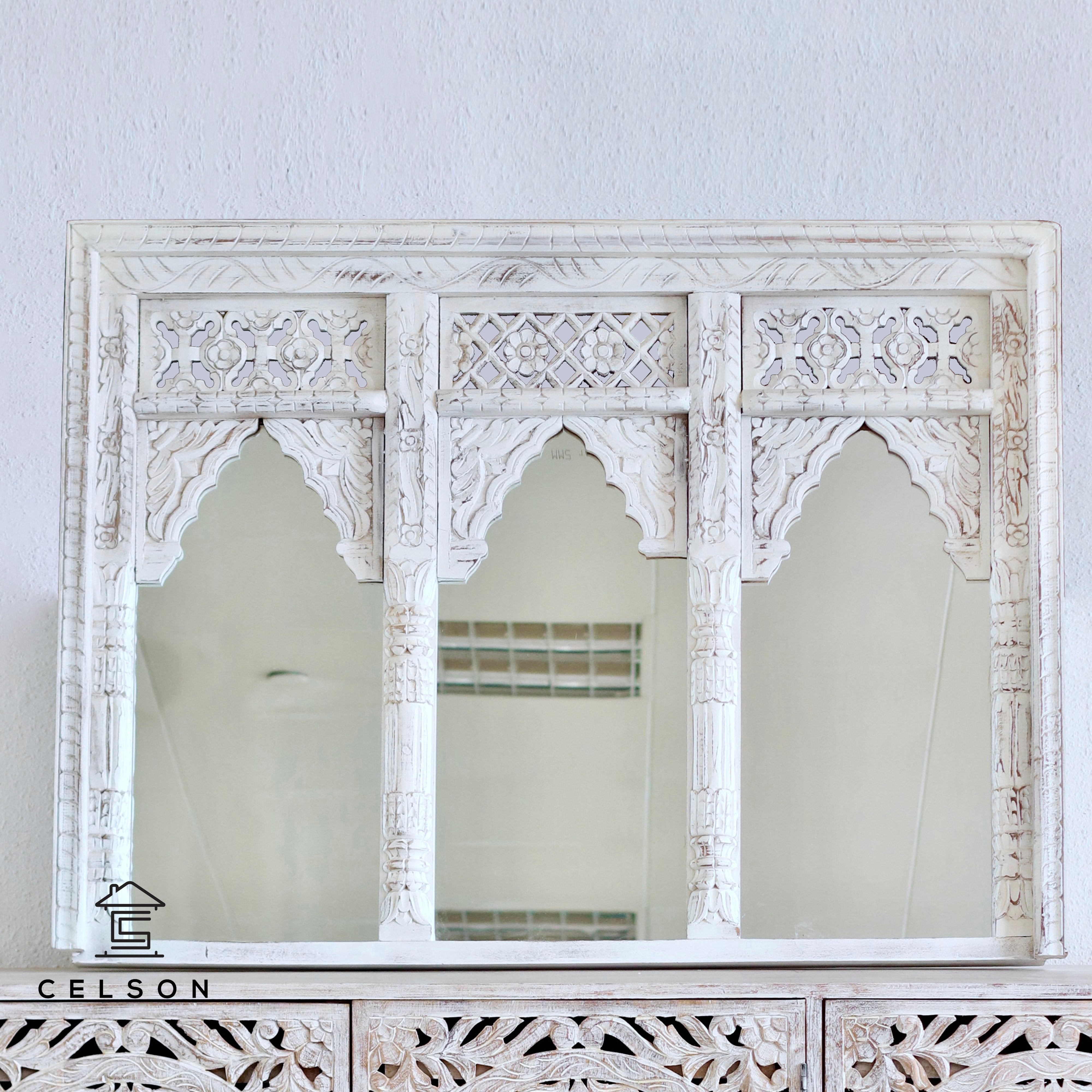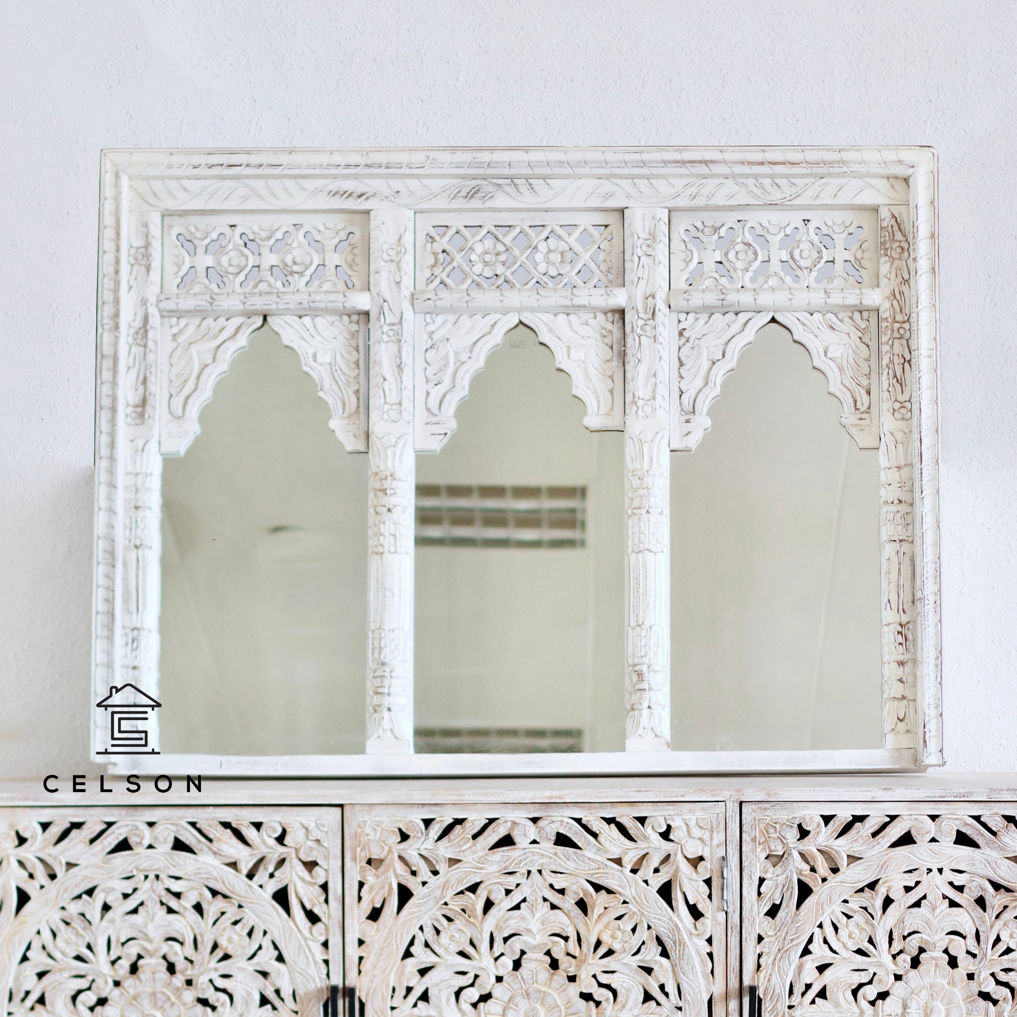 And hence you do not want to miss out on this 3 arch hand carved mirror frame with intricate wood work and a distressed finish.